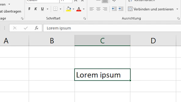 Wenn es um Zellen geht, ist es in Excel sehr wichtig, zwischen Zelleninhalt und Zellenformat zu unterscheiden. Der Inhalt einer Zelle kann zum Beispiel der Text „Lorem ipsum“ sein. Der einzige Ort, an dem wir sicher sein können, den korrekten Inhalt zu sehen, ist die Bearbeitungsleiste oberhalb der Tabelle.