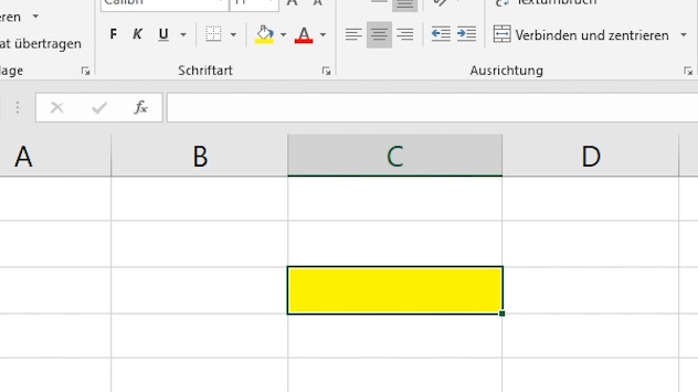 Zusätzlich gibt es die Zellenformate: Der Text auf unserem Bild ist zentriert, er ist rot, die Zelle ist gelb und hat einen Rahmen