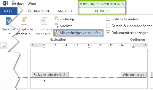 - Fußzeilen-Verknüpfungen zwischen den Abschnitten trennen